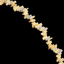 This brand new , smaller version of our classic “Empress” Bracelet is perfect for the smaller size wrist. 14K gold with pave’ set diamonds. Combines the spirit of New York with the elegance of royalty from another age. Also available in matching ring, earrings, and pendant/enhancers.