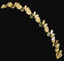Strongly angled rectangles of onyx, diamonds and gold create the impression of a musical keyboard in motion. Creates a balance between the elegant and the playful.
