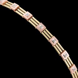 A new twist on a Joan Michlin classic! Pave'-set diamonds in rose gold cubist elements are offset by fluid, graphic bars of 14K gold. Truly wearable with everything! Check out the matching earrings.