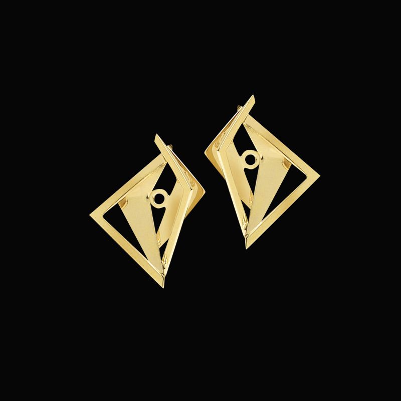 A small but dynamic14k gold earring jacket with angular reflectivity that will jazz up your existing diamond, pearl, or colored gemstone studs. Casual to dressy, the Kamikaze will delight the senses, and always makes a statement!