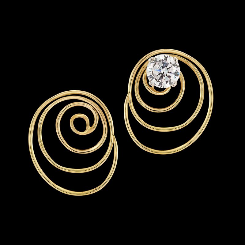 These graceful, whirling and dancing earring jackets will transform them all into a delightfully playful earrings with many possibilities. Ask about our many-colored gemstone studs to go with them!
