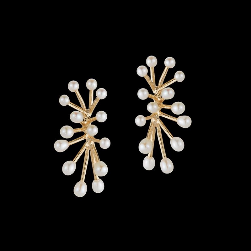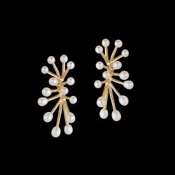 Say goodbye to old-fashioned pearls! The newest star in the Atomic series, these red-hot earrings form a delightful spray of pearls in 14K gold that complement any outfit or occasion. Check out the Atomic Enhancer for a perfect ensemble.