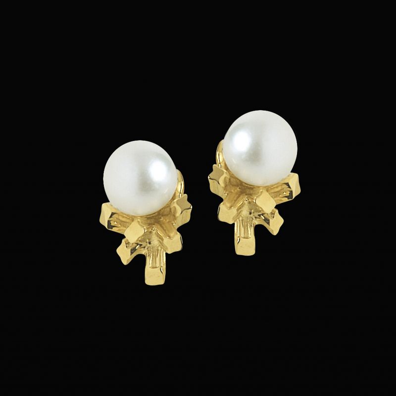 A sparkly twist on a classic pearl stud earring. Part of an extensive series that includes bracelet, pendant and rings.