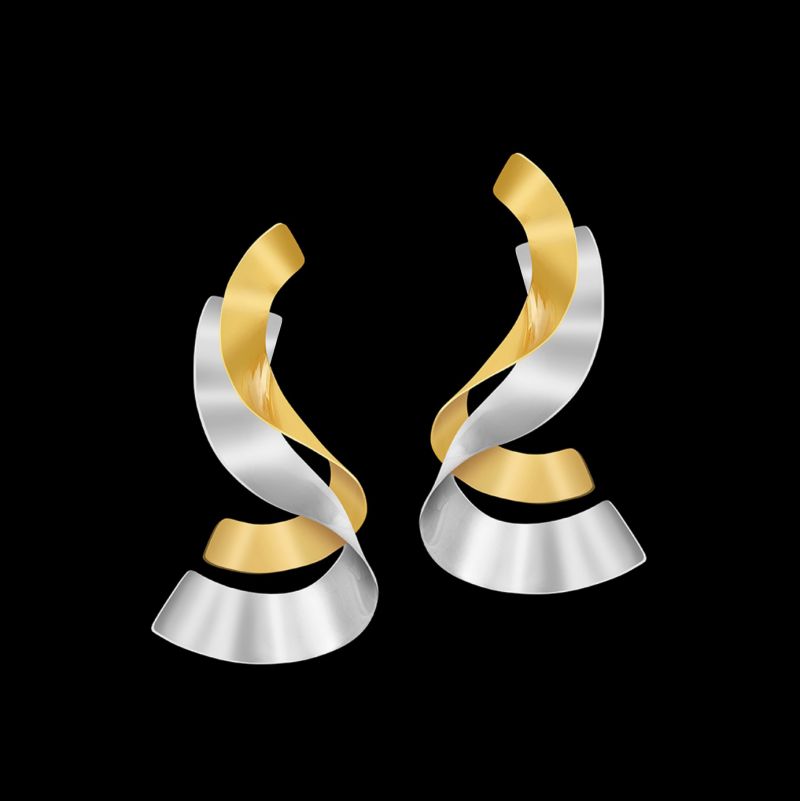 Hand-fabricated 14K Gold and Sterling Silver evoke the sweetest of music in a beautiful, dancing composition on the ear. A "go-to" earring for all occasions!
