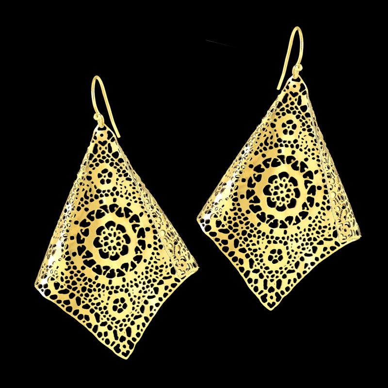 Two of Joan s favorite things, Gold and Lace, are beautifully married in these spectacular kite-shaped dangles. Lace truly never looked so good. Wear them everywhere! See also the Pillow Lace necklace.