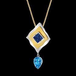 Paradise found! 14K gold and sterling silver, featuring Azurite Druzy, teal and blue topaz, peridot and chalcedony unite in this exotic pendant inspired by my travels to the Caribbean and South Pacific. See our matching Paradisio Earrings and Bracelet to complete this stunning set!