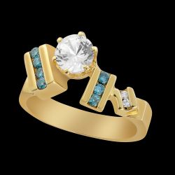 Bold, contemporary geometry defines this “new classic” that hearkens back to some of my earliest stylings, reimagined here in teal and white diamonds and a one carat white sapphire.