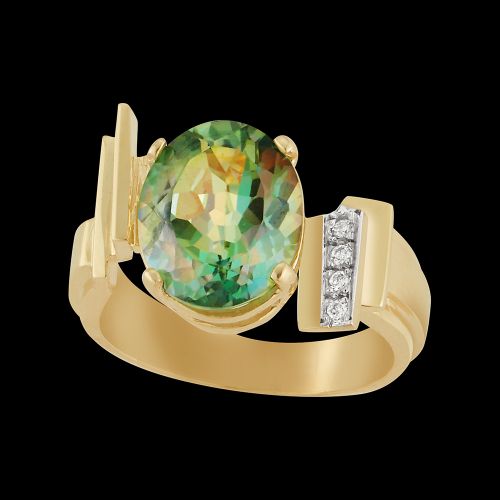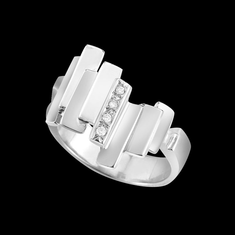 This striking, dynamic Art Deco ring features a stripe of pave-set diamonds to beautifully accent graceful steps of reflective14K gold. Also available in matching earrings, bracelet, and pendant/enhancer.