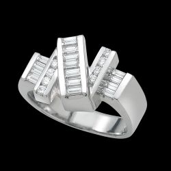 Over one carat of channel-set round and baguette diamonds alternate in vivid  white gold to create a visually stunning presentation.