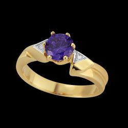 A petite but spectacular ring featuring a vibrant purple sapphire framed by two pyramidal elements with diamonds.