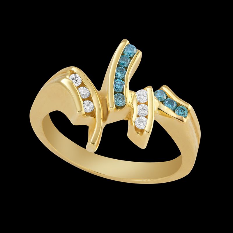 Part of the “Tango” dance series, Wavedance delightfully pairs brilliant white diamonds with rare Teal Diamonds in a gracefully playful ring. Infinitely wearable with all channel set stones.