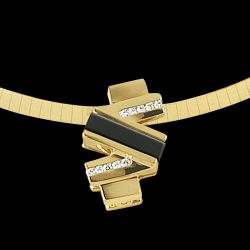 Bold, contrasting channel set diamonds and inlaid Onyx conveys a strong sense of movement that brings life and style to the wearer. Matching huggie earrings and ring available. Available with or without 16" 4mm Omega chain.